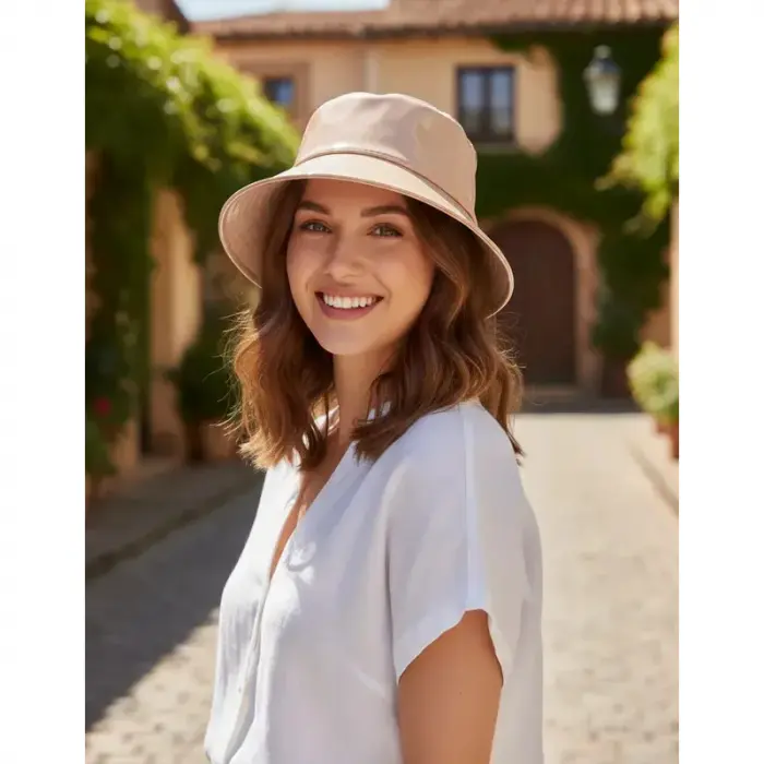 Ideal para la temporada Otoño/Invierno, este gorro no solo es un accesorio de moda, sino también muy funcional: su material de charol lo hace impermeable, protegiéndote de la lluvia ligera y la humedad.