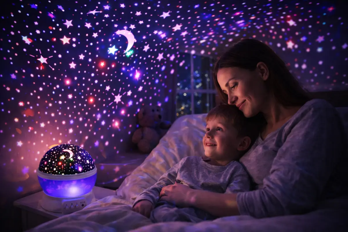 Transformá cualquier ambiente en un espacio mágico con este velador proyector de estrellas. Su diseño compacto se adapta fácilmente a mesas de noche, escritorios o el rincón favorito de tu hogar.
