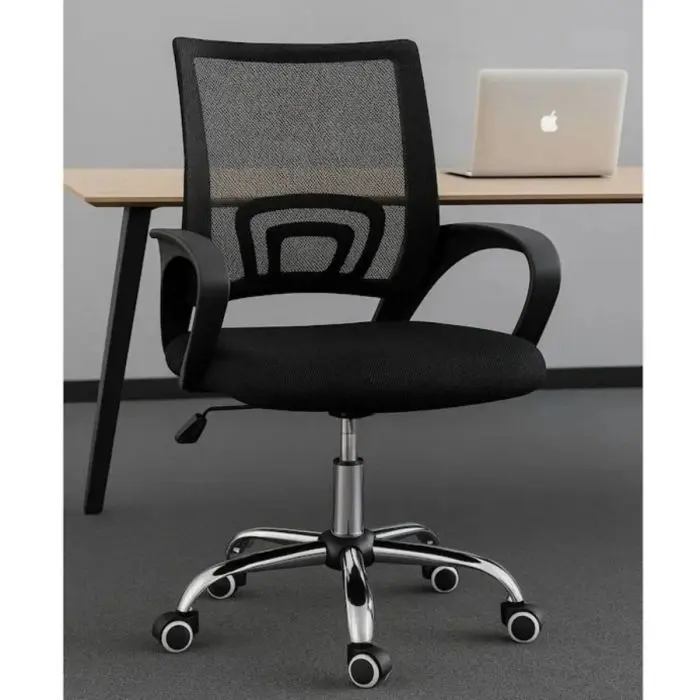Cuenta con una base de cruceta de plástico reforzado que brinda estabilidad y resistencia, además de un sistema ajustable que permite adaptar la altura según tus necesidades. Su asiento y respaldo están diseñados para ofrecer el máximo confort y una correcta ventilación.